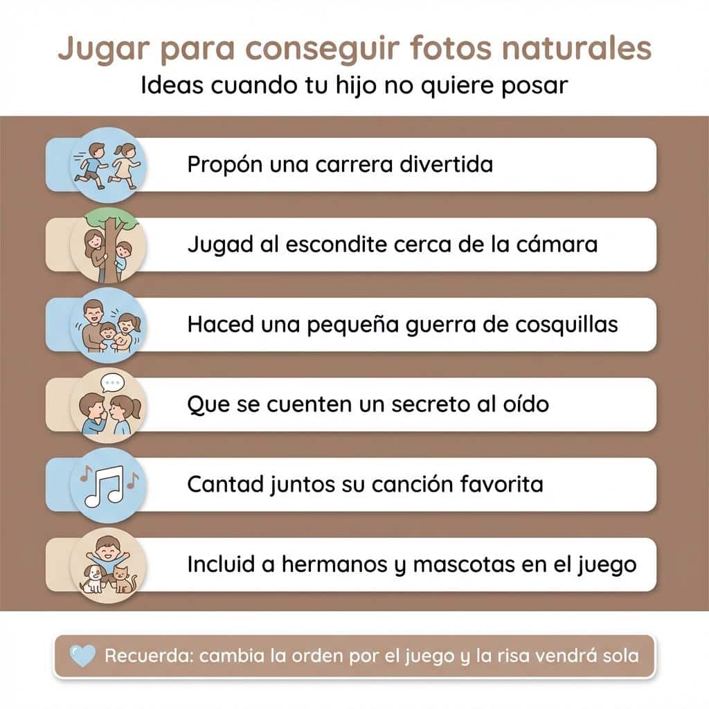 Finalmente, muchas familias dudan sobre si es mejor dirigirles o dejarles a su aire. La solución suele estar en el término medio: ofrecer guías suaves sobre dónde colocarse o qué hacer, pero permitiendo que interactúen con libertad. Si se sienten guiados pero no controlados, su expresión corporal será mucho más relajada y auténtica, reflejando su verdadera personalidad.